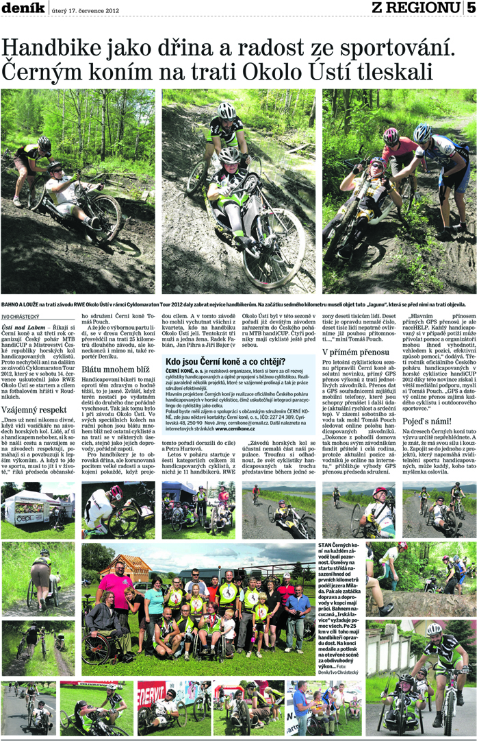 Z Ústeckého deníku o závodu RWE Okolo Ústí v rámci Cyklomaraton Tour 2012.